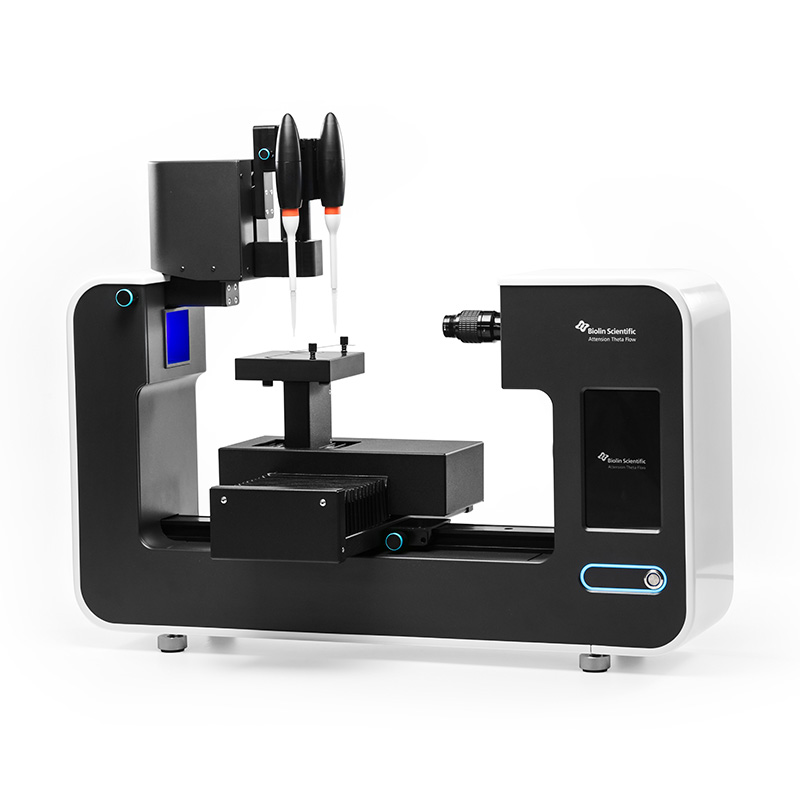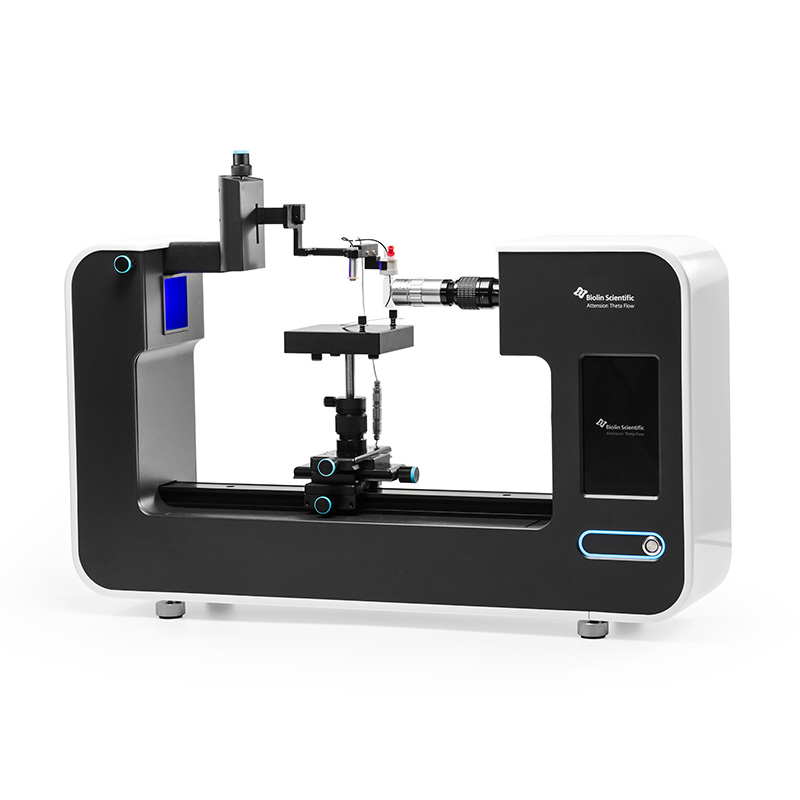 The Biolin Scientific Attension portfolio of optical tensiometers, Theta, includes manual instruments as well as fully automatic systems that, in addition to static and dynamic contact angle, can also measure surface tension, interfacial tension, interfacial rheology, surface roughness and SFE. Modular design allows functionality and productivity to be added as needed. All Thetas have a quality camera, dispenser with disposable tips, optimal dispenser movement and all-inclusive software. An optical tensiometer is also called an optical goniometer, contact angle goniometer, contact angle meter or drop shape analyzer.