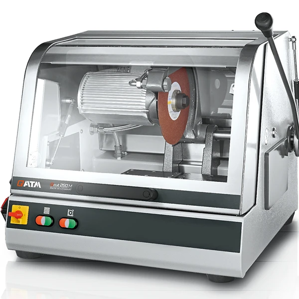 Qcut 250 M är en särskilt användarvänlig våtkapmaskin med manuell skärning. Genom att öppna maskinen fälls huven inåt så att hela skärkammaren är lättillgänglig. Det runda fönstret öppnar ett brett synfält under kapprocessen.